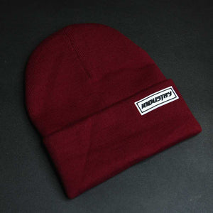 Our beanies are one size fits all, with a small but prominent rubber patch Industry logo.